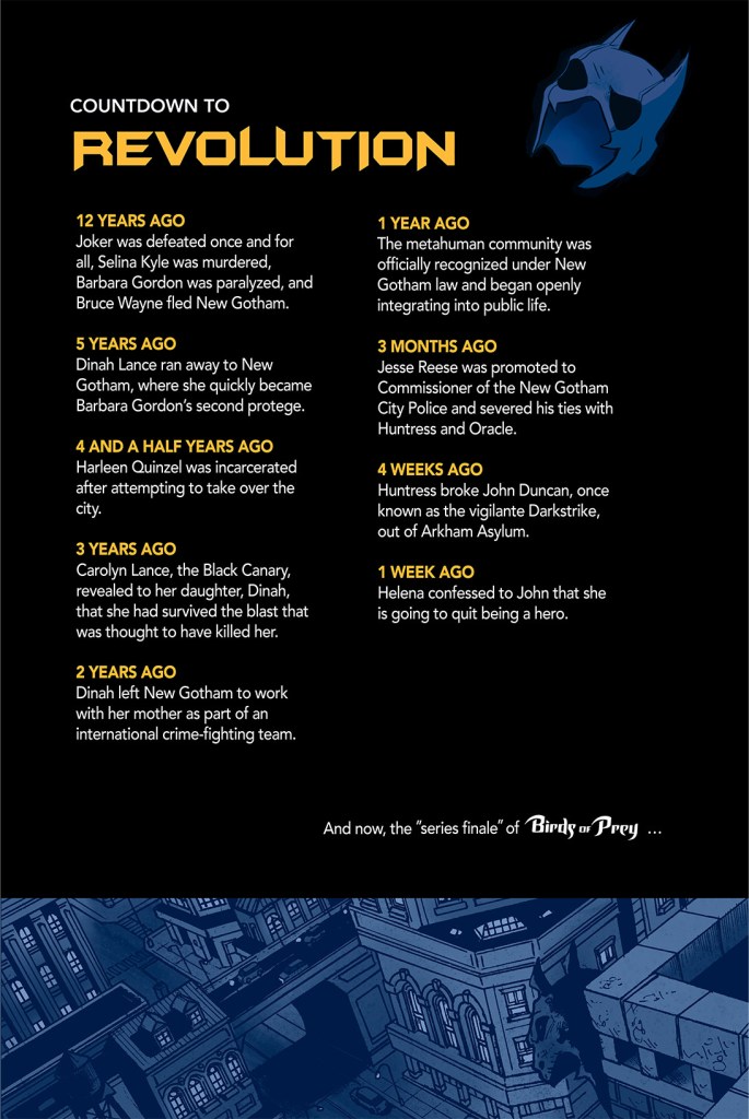DISCLAIMER: The following comic story is a fan-made work and does not intend to infringe on the rights of the creators or copyright holders of Birds of Prey, Batman, or any other part of the DC Universe.