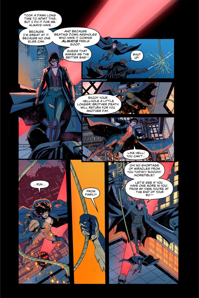 A huge thank you to the artists who made this comic possible. Maicou Oliveira was a pleasure to work with over the years it took to bring this project together, and his inks never shied away from even my script’s most laborious needs. Mickaël Journou’s cover art brings me more joy than I can express, and I’m so honored he made the time to bring his skills and style to the piece. Nikki Powers’ lettering is as precise and professional as it comes. It’s embarrassing how good these three are at what they do. I’m so thankful to them all.